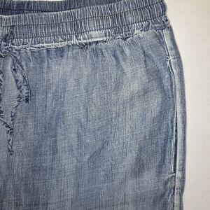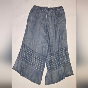 Easel Wide Leg Mineral Wash Lightweight Denim Capris With Pintuck Detail Large