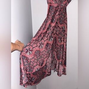 Chic Silky Paisley Maxi Wrap Dress in pink and blue