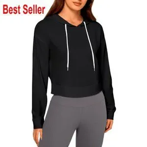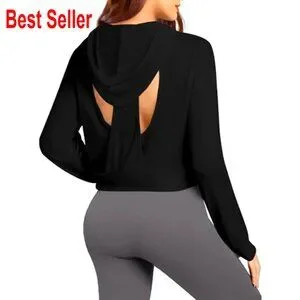 Backless Cropped Hoodie Open Back Workout Activewear Pullover Long Sleeve