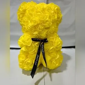 Charming teddy bear made of yellow roses. Features a black ribbon for added elegance.