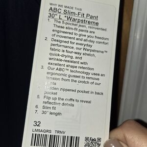 NWT Lululemon ABC Slim Fit Navy Blue Pant 30" L Warpstreme