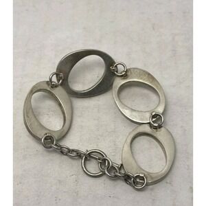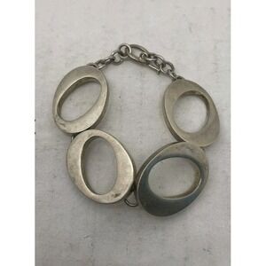 Vintage Modernist Sterling Silver Link Bracelet Brutalist Scandinavian Style...