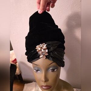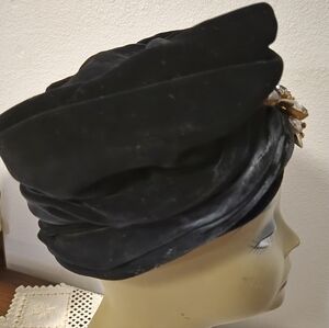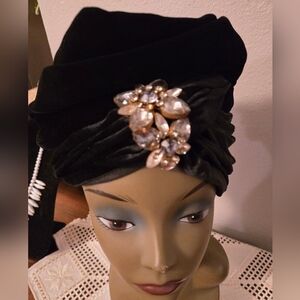 Vintage Velvet Marche Exclusive Black Turban with Brooch Accent