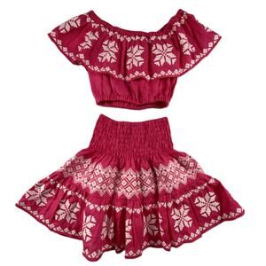 Step out in exquisite style with this absolutely charming Foberini Eneida Pink Linen Two-Piece Set! This stunning ensemble features a beautifully crafted crop top and a matching skirt, both made from luxurious 100% linen, perfect for warm weather or elegant occasions. Foberini is renowned for its unique designs inspired by rich Ukrainian cultural embroidery, and this set is a prime example. The delicate white embroidery beautifully contrasts with the vibrant pink linen, creating a truly eye-catching and artistic look. It's a statement piece that blends tradition with modern fashion, offering both comfort and sophistication. This set is in excellent pre-owned condition, showing minimal signs of wear and ready for its next adventure with you. It has been meticulously cared for and is presented in a way that truly highlights its beauty and craftsmanship. Measurements (approximate, laid flat): Crop Top: Bust [Insert Measurement] inches, Length [Insert Measurement] inches Skirt: Waist [Insert Measurement] inches, Length [Insert Measurement] inches Don't miss the chance to own this unique and versatile set that will undoubtedly turn heads wherever you go. It's perfect for a special event, a stylish brunch, or simply elevating your everyday wardrobe with a touch of cultural elegance. Embrace the beauty and comfort of this gorgeous Foberini creation today!