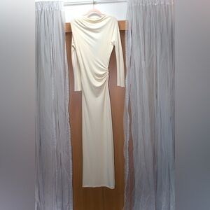 JLUXLABEL Cream Kathleen Slit Maxi Long Sleeve Dress