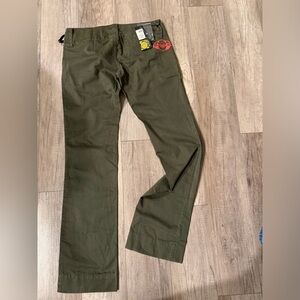 Vintage very low rise Diesel Buccaneers style pants, olive green color. Perfect for casual wear.