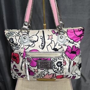 V-DAY SALE! Coach Poppy Floral Pink and Silver Tote EUC