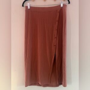 Abercrombie & Fitch Ribbed Midi Wrap Skirt Rust Brown Button Detail Women’s