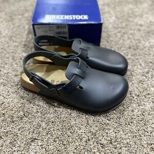 The product is a new in box pair of Birkenstock Tokio sandals for men in size 44 (EUR) or 11 (US). These sandals are made of black leather with a slip-on style, featuring a comfortable leather upper and outsole. The design is suitable for casual, workwear, and business occasions, making them a versatile and stylish shoe option for men. Made in Germany by the trusted brand Birkenstock, these sandals are a quality and fashionable choice for any wardrobe. With professional sole. Tokio Super Grip- great for nurses and doctors!
