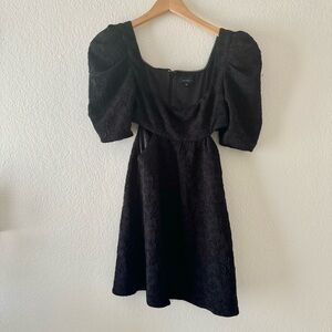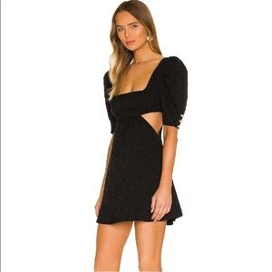 Majorelle Tillie Jacquard Puff Sleeve Cut Out Mini Dress in Black NEW