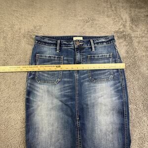 Hinge Denim Pencil Skirt Midi Womens 10 Blue Stone Wash Stretch Cotton
