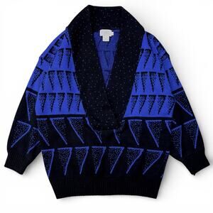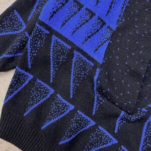 Vintage FABE Abstract Shawl Collar Geometric Triangle Knit Sweater Blue Black M