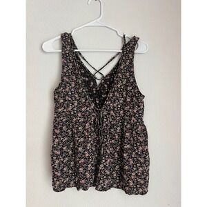 American Eagle Floral Babydoll Tank Top Criss Cross Back Sleeveless S