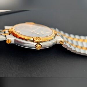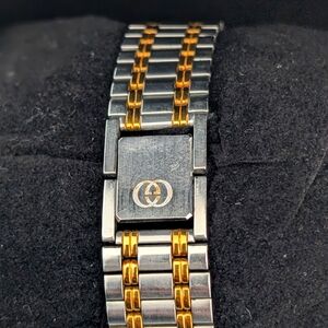 Elegant Gucci watch featuring a sophisticated gold and silver design. Perfect for adding a touch of luxury to any outfit.