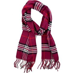 Men and Women Dark Berry Plaid Winter Scarf Cashmer Soft Plum Feathers
