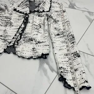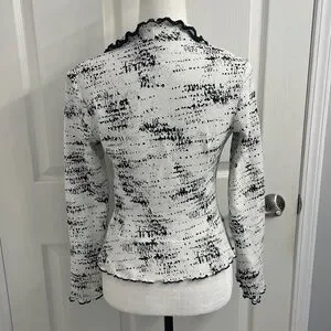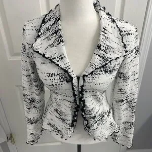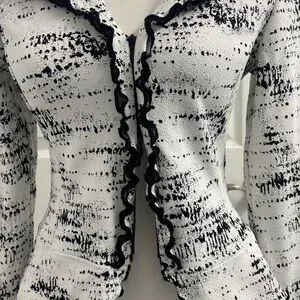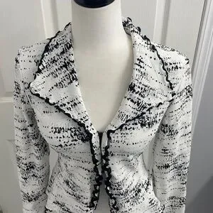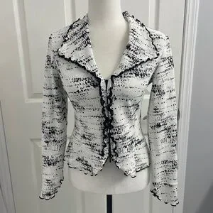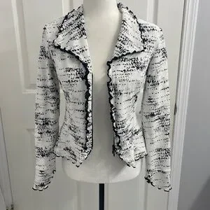 Joseph Ribkoff Black White Jacket Zip up Ruffle Trim size US 4
