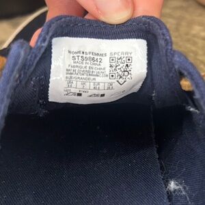 Stylish Sperry sneakers. Navy canvas upper. Tan laces. White sole. Perfect for casual wear. ππ₯°