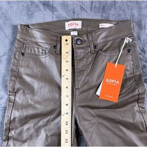 NWT SOFIA VERGARA Melisa High-Rise Faux Leather Flare Pants Jeans Brown SZ 0