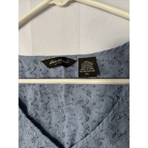 Eddie Bauer Sleeveless Lace Top Blue Linen/Cotton Blend EUC