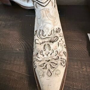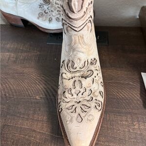 Step out in style with these elegant cream western boots. Featuring intricate embroidery, these boots are perfect for any occasion.
