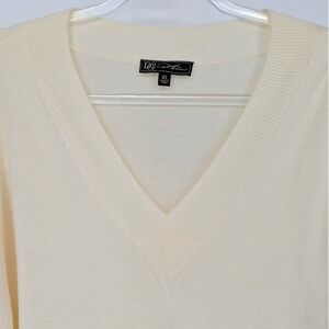 DG2 Diane Gilman Lux Touch Ivory V Neck Sweater Top Women's XL Tunic Boyfriend