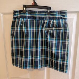 Chic plaid mini skirt by Lija. Features vibrant blue and green pattern. Ideal for casual wear.
