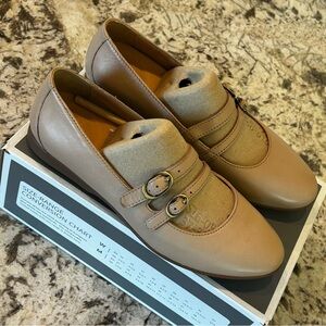 Dansko Leeza Ballerina Flats Leather Double Strap Buckle Tan Women 38 7.5-8