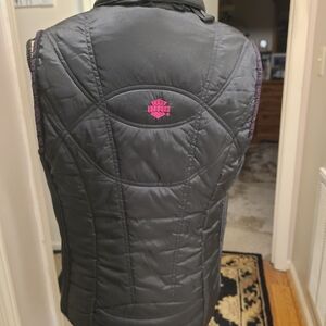 Stylish Harley-Davidson fitted vest. Features pink and black colors. Iconic logo design.