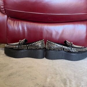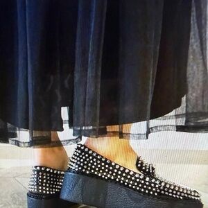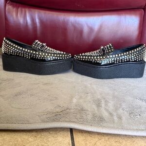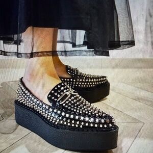 STUNNING: Jeffrey Campbell CHOUX-ST Black Studded Platform Loafers SZ 5.5 Orig. $310. These Loafers provides stability as it fully covers the instep suitable for all seasons. The sole and upper are unified in black, making them perfect for both day and night wear. Jeffrey Campbell is based on vintage taste, mixing street culture and runway glamour. The passion poured into every detail is the hallmark of Jeffrey Campbell. The collections, with innovative designs and functionality, has become a global brand. With the hope to empower individuals through progressive silhouettes and achievable looks. Their mission is to make bold footwear for everyone to enjoy.