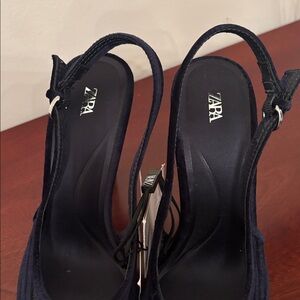 Zara Slingback pointed toe blue Combination Heels Sz.6.5