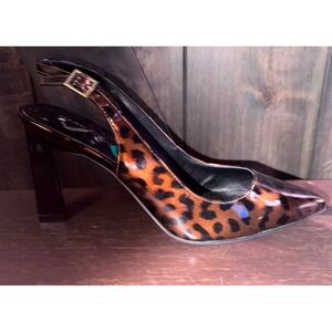 NEW Marc Fisher Leopard Print Slingback Heels Pumps Square Size 7.5
