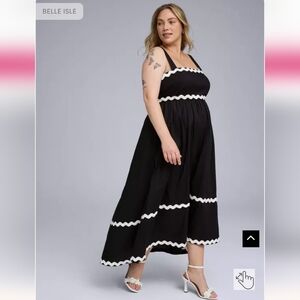 Belle Isle Maxi Babydoll Cotton Poplin Dress Black & White Size M/L Fits L/XL
