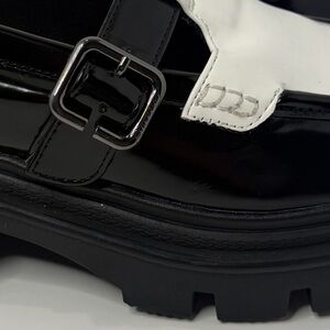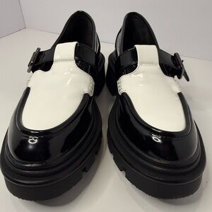 Sam Edelman Black & White Patent Mary Jane Chunky Platform Loafers W Size 7