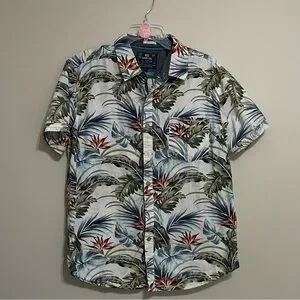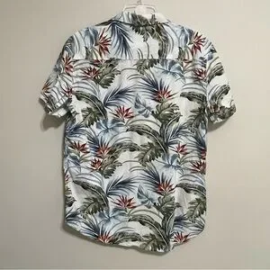 Men's Leaf Print Short Sleeve Shirt~ Size Large Caribbean, Tropical or Resort
