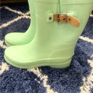 Stylish light green boots for rainy days. Durable and comfortable. Ideal for wet weather.