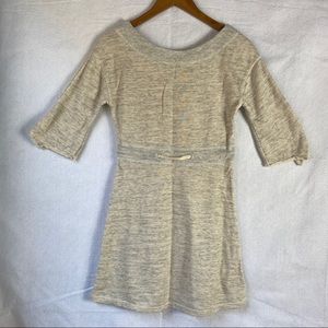 Cute Anthropologie elbow sleeve dress with waist tie string. Arms have a raw hem.