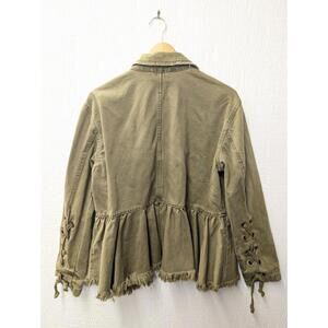 Free People Willow Jacket Lace Up Cuff Ruffle Peplum Military Green Womens Large