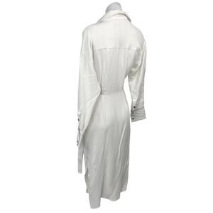 NEW Argent White Ivory Collared Wool Crepe Long Sleeve Wrap Shirt Maxi Dress Sz S