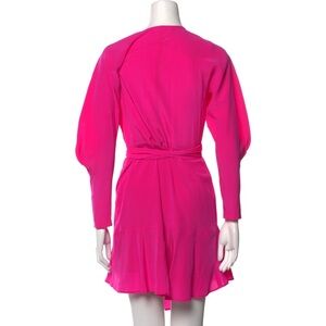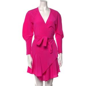 ALC Hot Pink Silk Long Puff Sleeve Ruffle Wrap Mini Dress - US 2 / XS