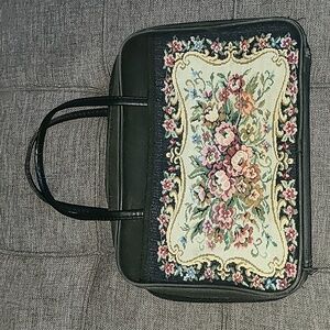 Vintage Bible Cover With Handles Black Floral Print Embroidered Tapestry Zip