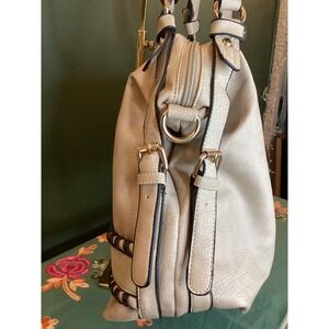 Marc New York Beige Faux Leather Shoulder Bag With Decorative Braiding