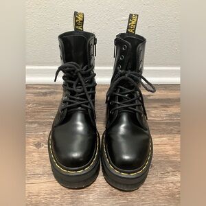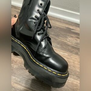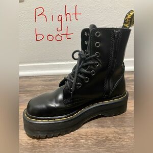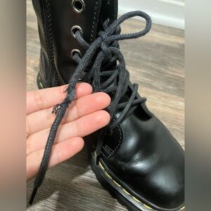 Classic black leather boots. Size: 6 US L (ladies), 5 US M (male). Common wear signs on the soles and on some parts of the leather. The lace on the left boot might have to be replaced depending on preference. Please reference the picture and video where this is pointed out.