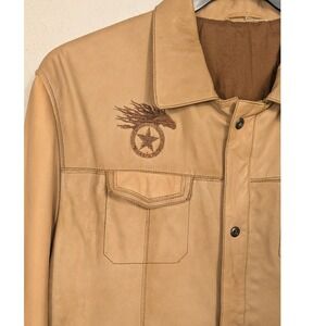 Mens Tan Nappa Leather Jacket Cowboy Western Style Star Embroidery Size L