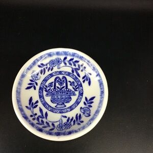 Delicate blue floral motifs adorn this charming small decorative plate, showcasing a central basket design that evokes timeless elegance. The intricate pattern, reminiscent of classic Delftware, brings a touch of vintage charm to any display. Perfect for accenting a shelf, gracing a dollhouse, or serving as a unique trinket dish for cherished small items, this piece adds a touch of understated beauty to your home. Consider it for a petite display on a side table or as a charming accent during a tea party.