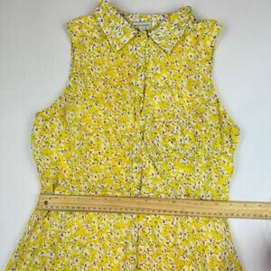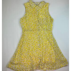 True Blood's Sookie Stackhouse Lucca Couture Yellow and White Floral A Line Sleeveless Collared Button Up Mini Dress Women's Small