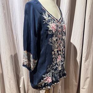 Johnny Was Heavily Embroidered Cupro Top NWT L