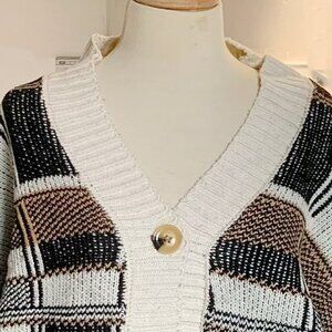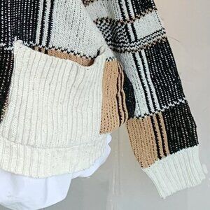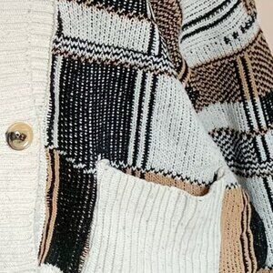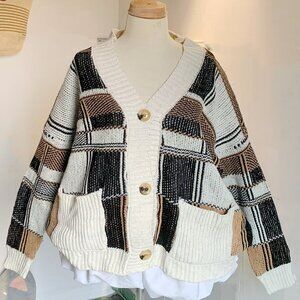 Patchwork Knit Cardigan Geometric Sweater