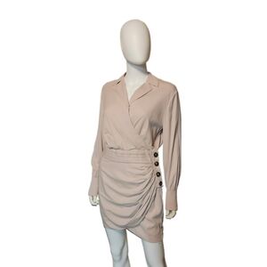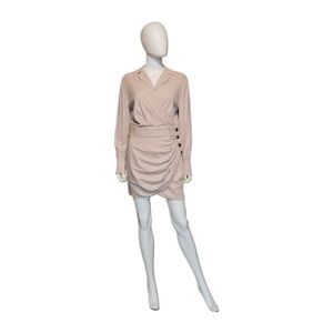 SELF-PORTRAIT | Long Sleeve Wrap Mini Dress | Taupe | US 4