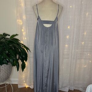 This chic silver maxi dress offers a sophisticated look for any event. Its flowing design and subtle shimmer add a touch of elegance.