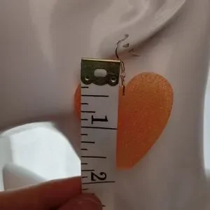 Add a pop of color with these stunning orange heart-shaped earrings. Perfect for any occasion. sterling silver ear wires